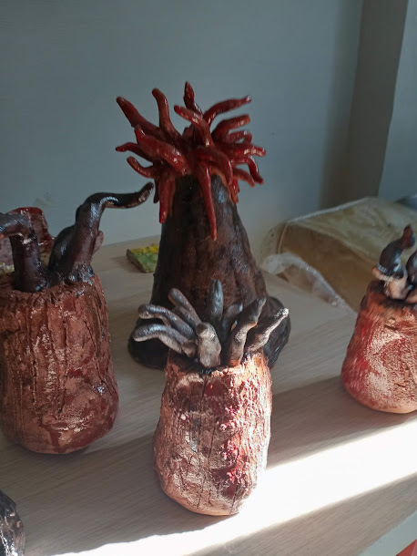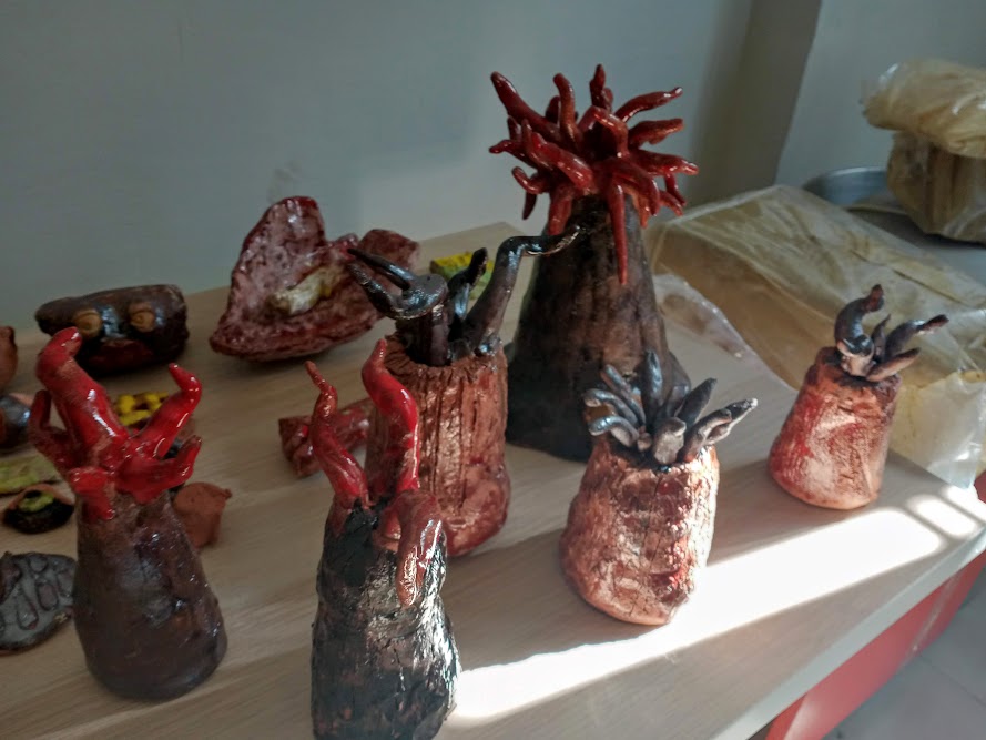 Dal virus ai vaccini al distanziamento sociale, lungo tutto il muro perimetrale esterno del campo da palla al volo. Oltre al murales, ci sono state creazioni di manufatti in terracotta, raffiguranti i simboli apotropaici napoletani il Vesuvio e maschere della tradizione napoletana. Una vera simbiosi collaborativa coi giovani Artisti, che non si sono risparmiati un solo minuto. Completamente tuffati fra i barattoli ed i pennelli in maniera del tutto autonoma e decisa, mi hanno dato il più alto insegnamento Artistico, scevro da convenzioni sociali, culturali, politiche.