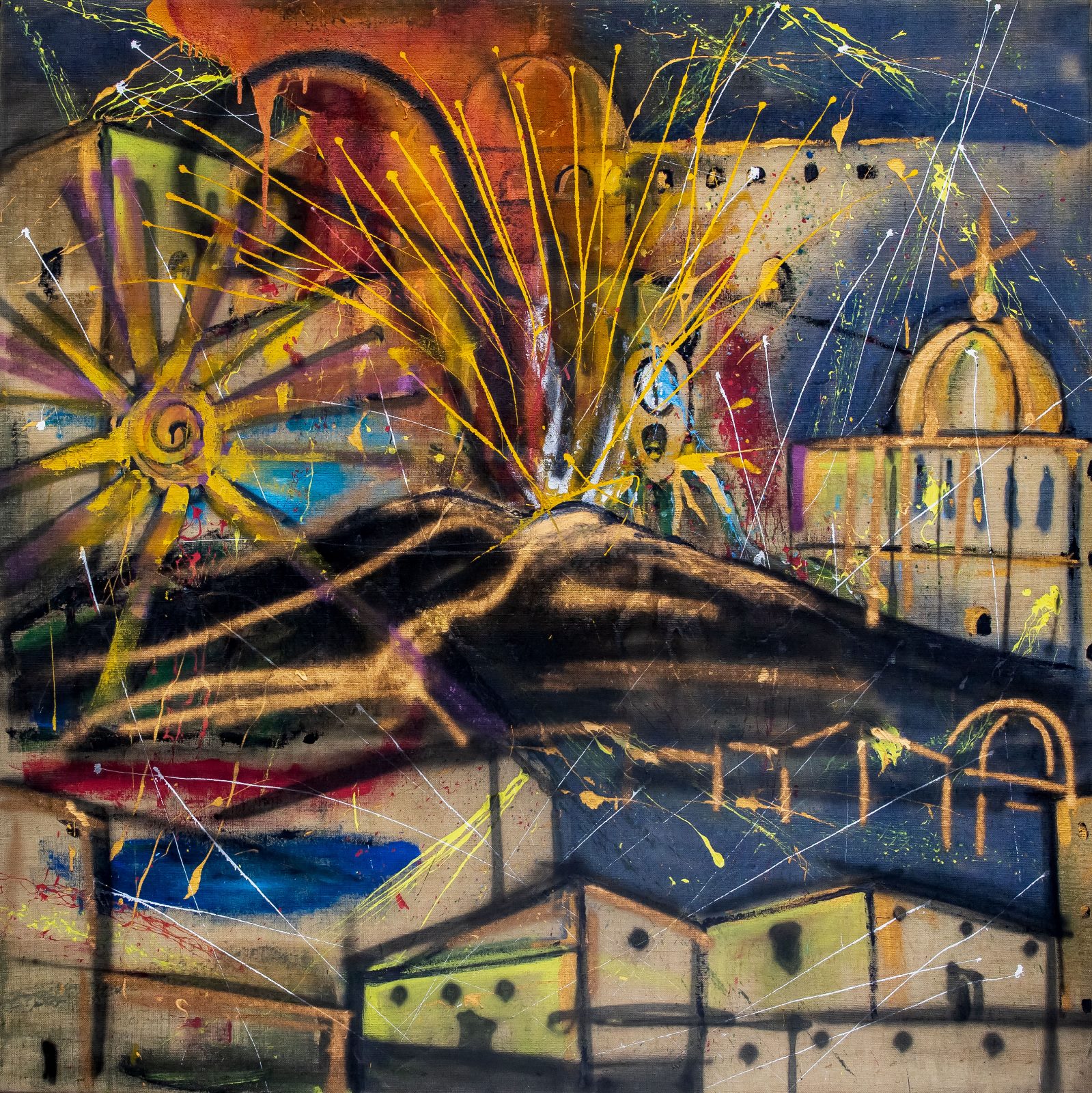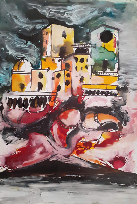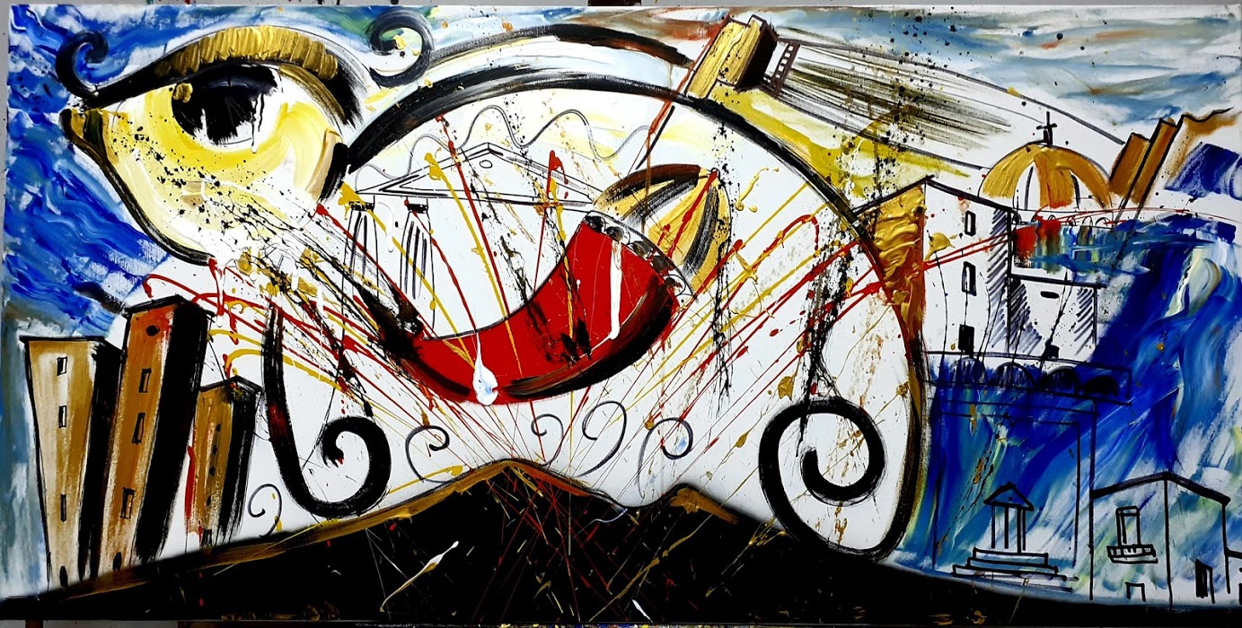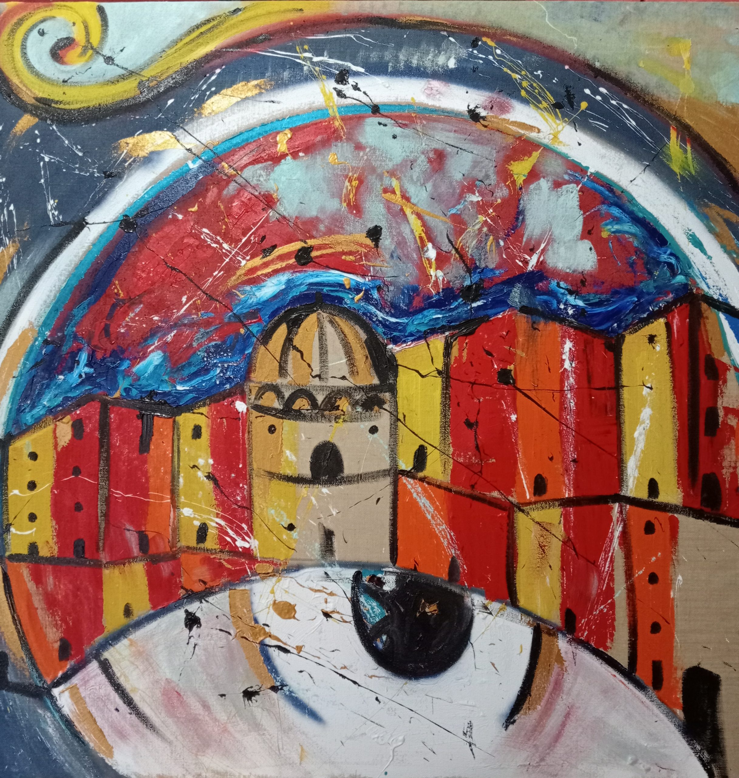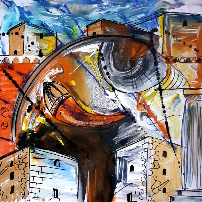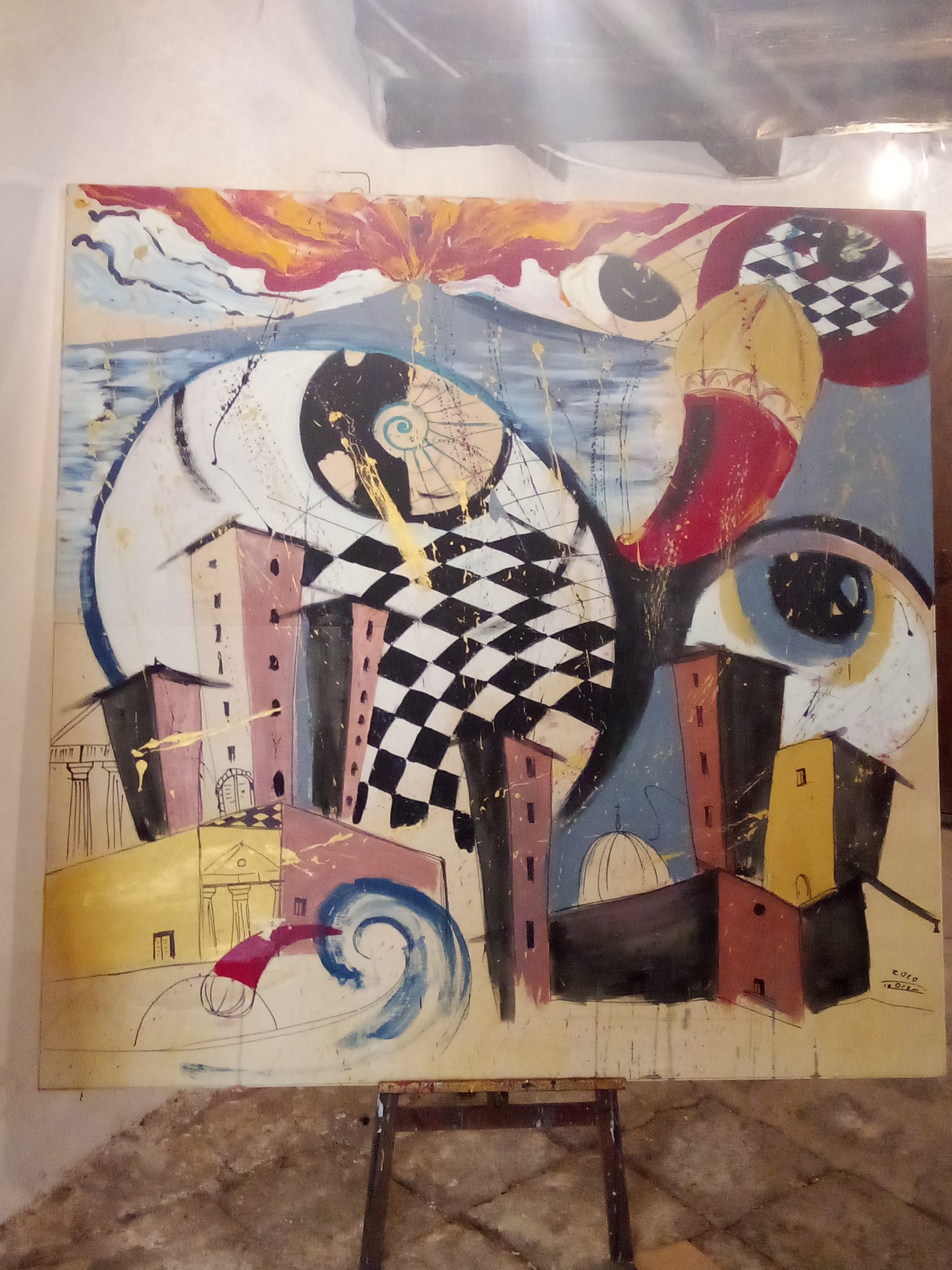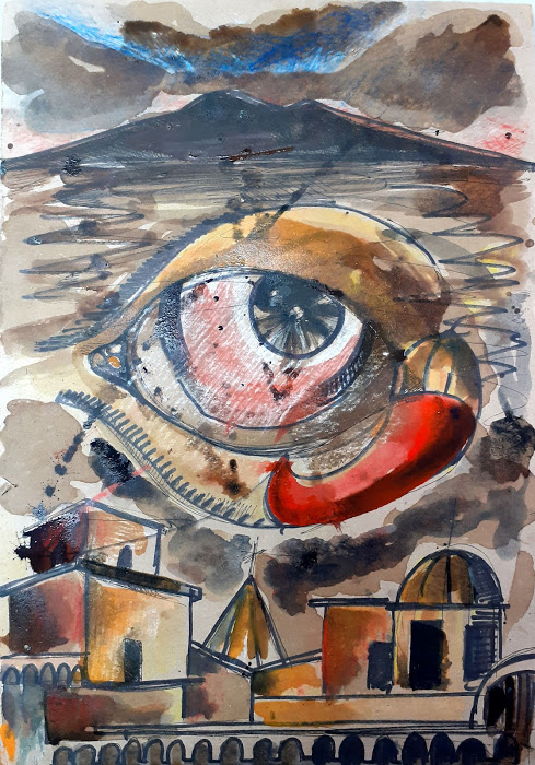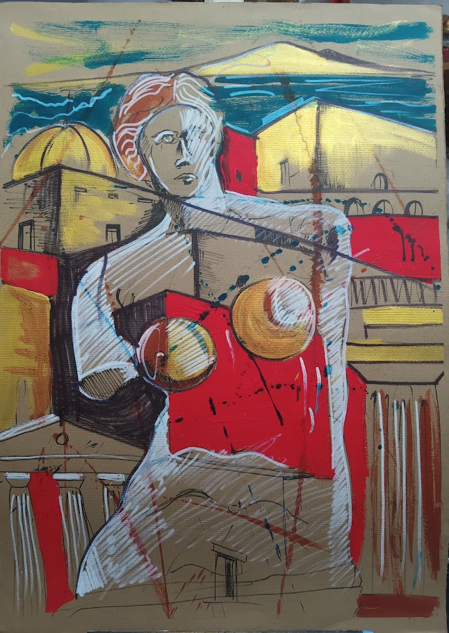 Ha avuto inizio alla fine del 2019, quasi a volere pre avvisare quello che e stato poi nel 2020 con le restrizioni ed il lockdown, il momento che ha attraversato l’umanità intera. Reclusi ed in isolamento forzato l uomo lascia spazio alle citta vuote ed isolate come se fossero in sospensione ed in attesa di qualcosa o qualcuno che arrivasse per rompere l incantesimo. Nella serie succitata si possono notare delle tecniche miste su foglio o tele di paesaggi urbani con soli elementi iconografici della cultura partenopea, dai corni al vulcano piu famoso al mondo. Tutto in estrema solitudine, non vi sono figure umane o animali, predominano palazzi e cupole, cromie forti predominano il paesaggio, smarrendo quasi del tutto il pensiero dell uomo che abita la metropoli. Tutto il paesaggio e un susseguirsi di finestre e colate coloristiche che vogliono sostituire il grigiore e la staticità della metropoli vuota dal via vai delle auto ed i passi che solcano l’asfalto.