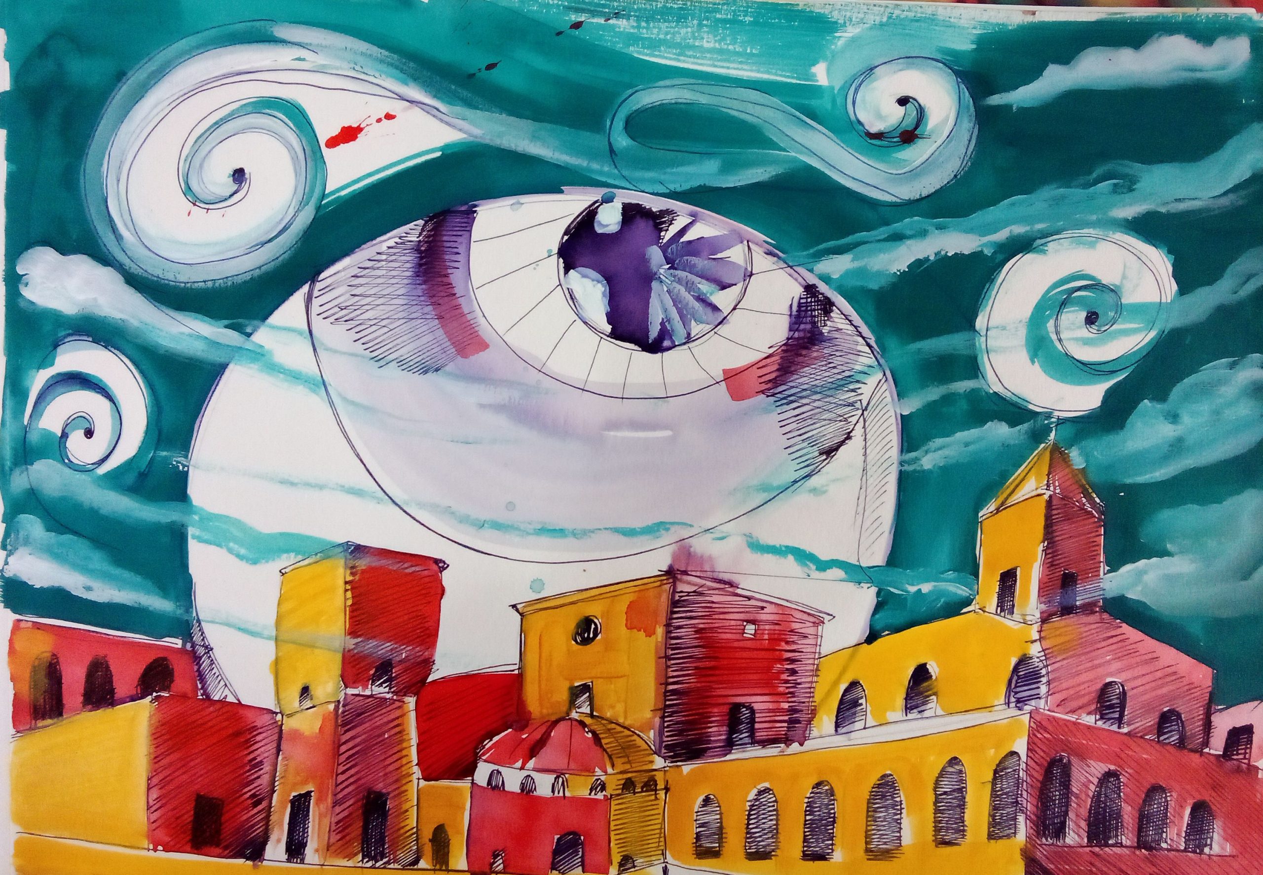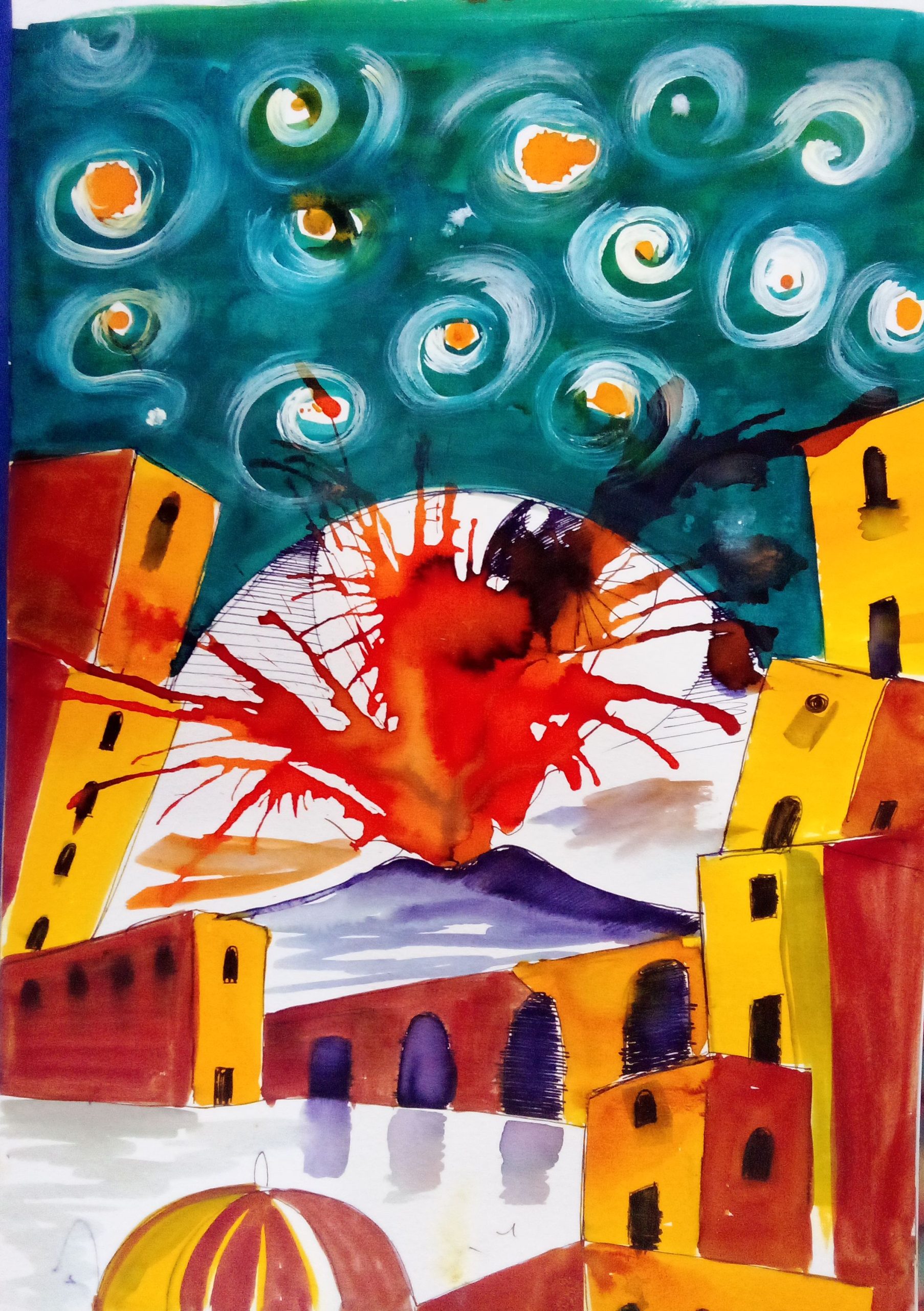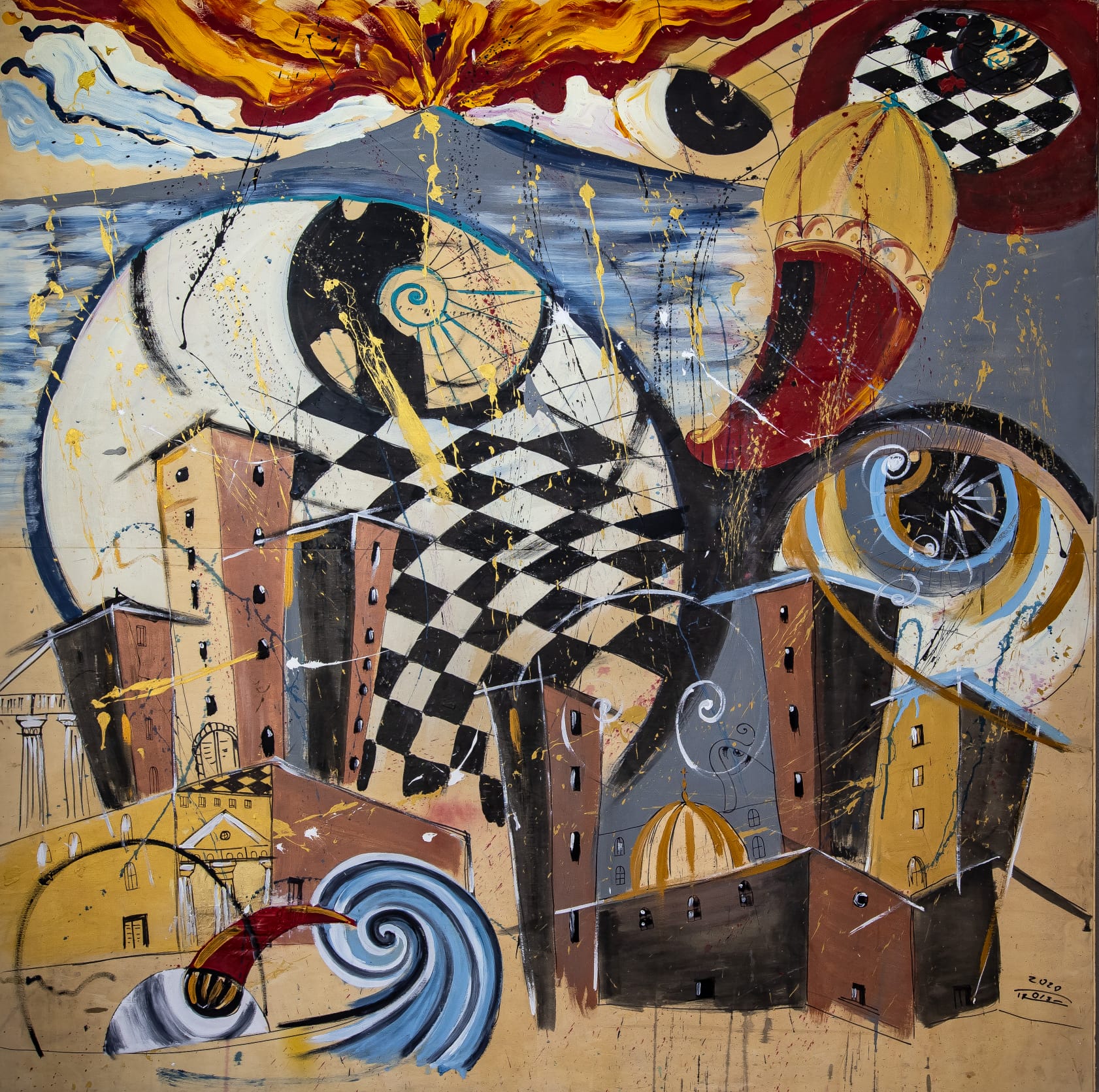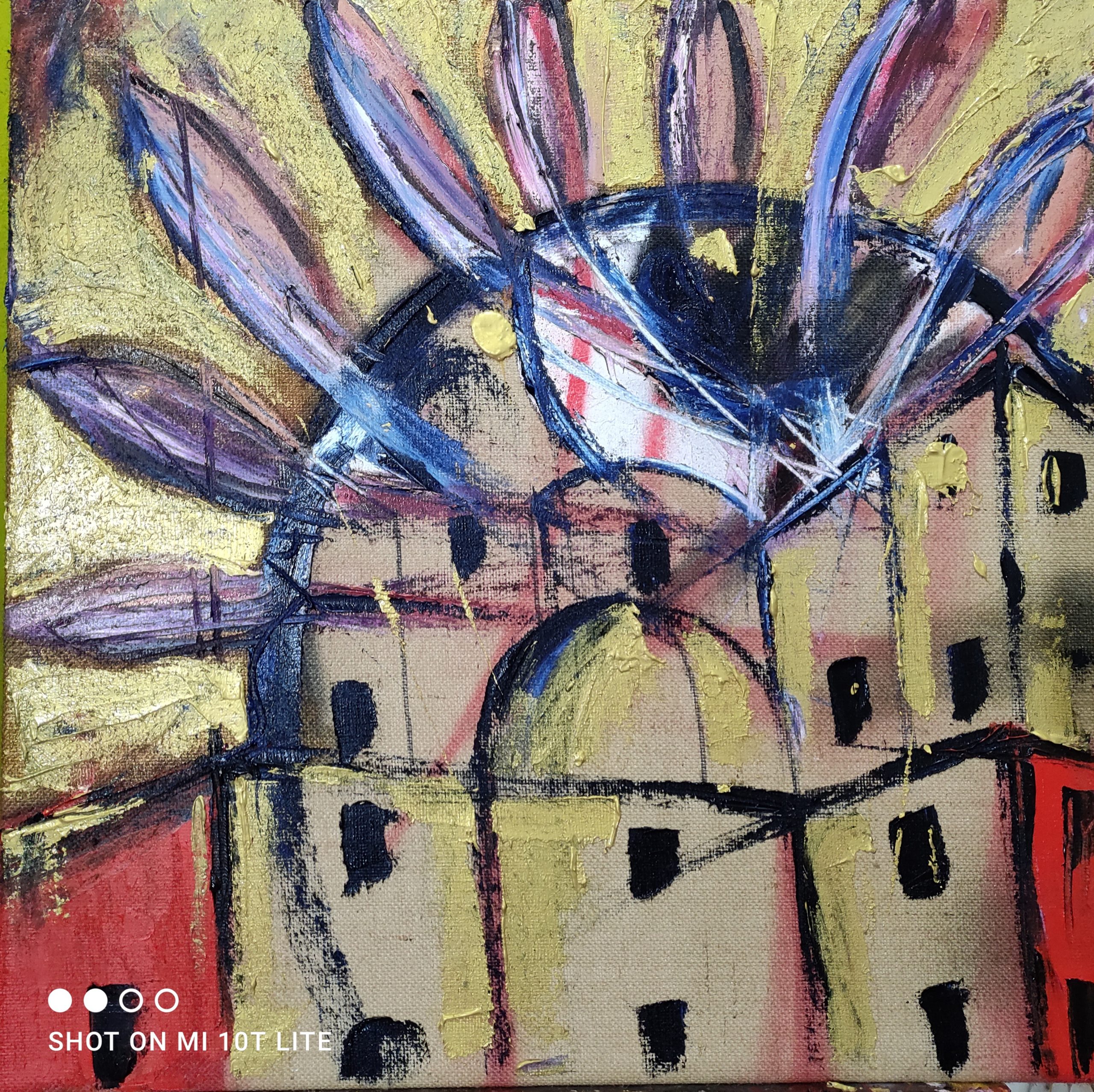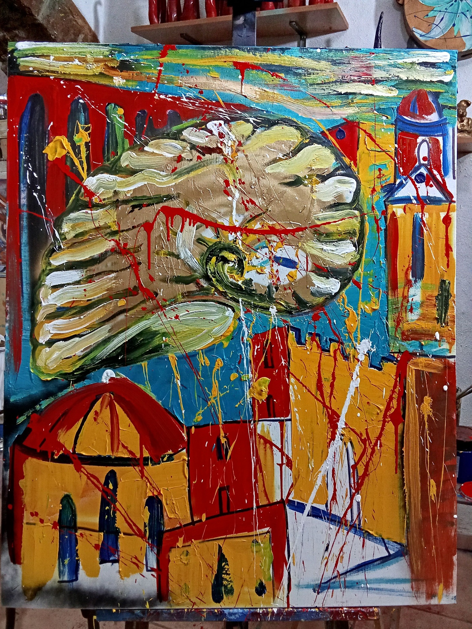 Ha avuto inizio alla fine del 2019, quasi a volere pre avvisare quello che e stato poi nel 2020 con le restrizioni ed il lockdown, il momento che ha attraversato l’umanità intera. Reclusi ed in isolamento forzato l uomo lascia spazio alle citta vuote ed isolate come se fossero in sospensione ed in attesa di qualcosa o qualcuno che arrivasse per rompere l incantesimo. Nella serie succitata si possono notare delle tecniche miste su foglio o tele di paesaggi urbani con soli elementi iconografici della cultura partenopea, dai corni al vulcano piu famoso al mondo. Tutto in estrema solitudine, non vi sono figure umane o animali, predominano palazzi e cupole, cromie forti predominano il paesaggio, smarrendo quasi del tutto il pensiero dell uomo che abita la metropoli. Tutto il paesaggio e un susseguirsi di finestre e colate coloristiche che vogliono sostituire il grigiore e la staticità della metropoli vuota dal via vai delle auto ed i passi che solcano l’asfalto.