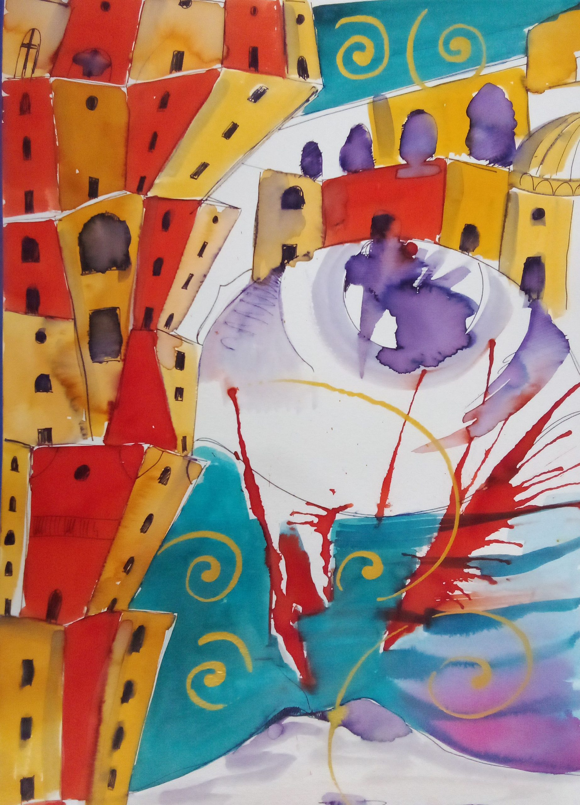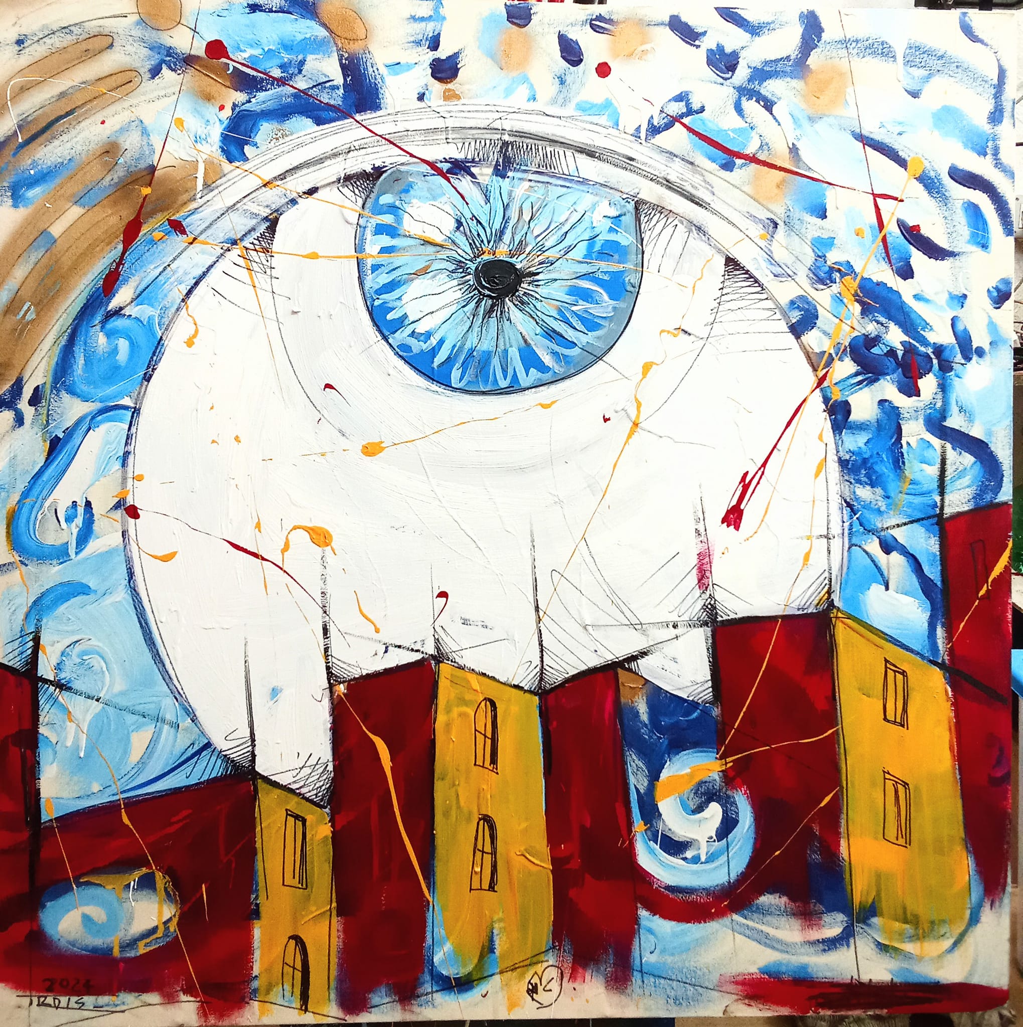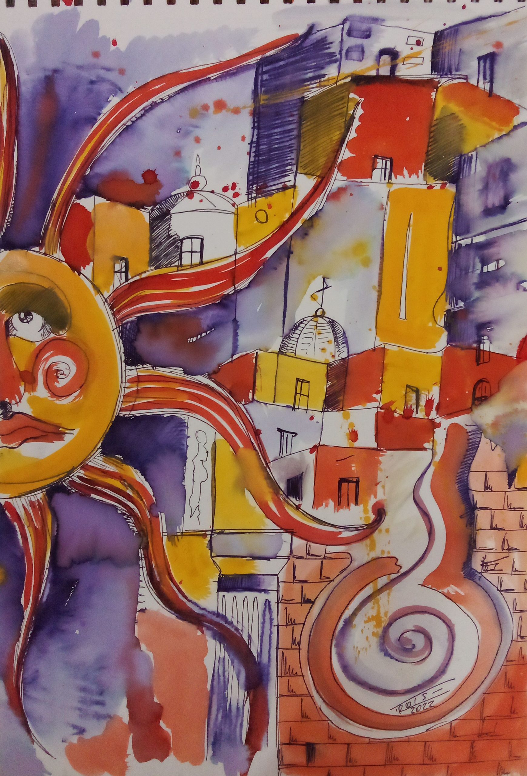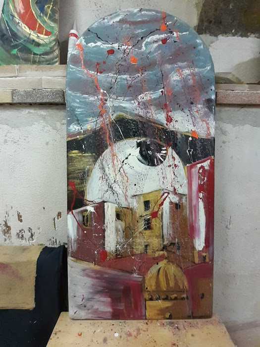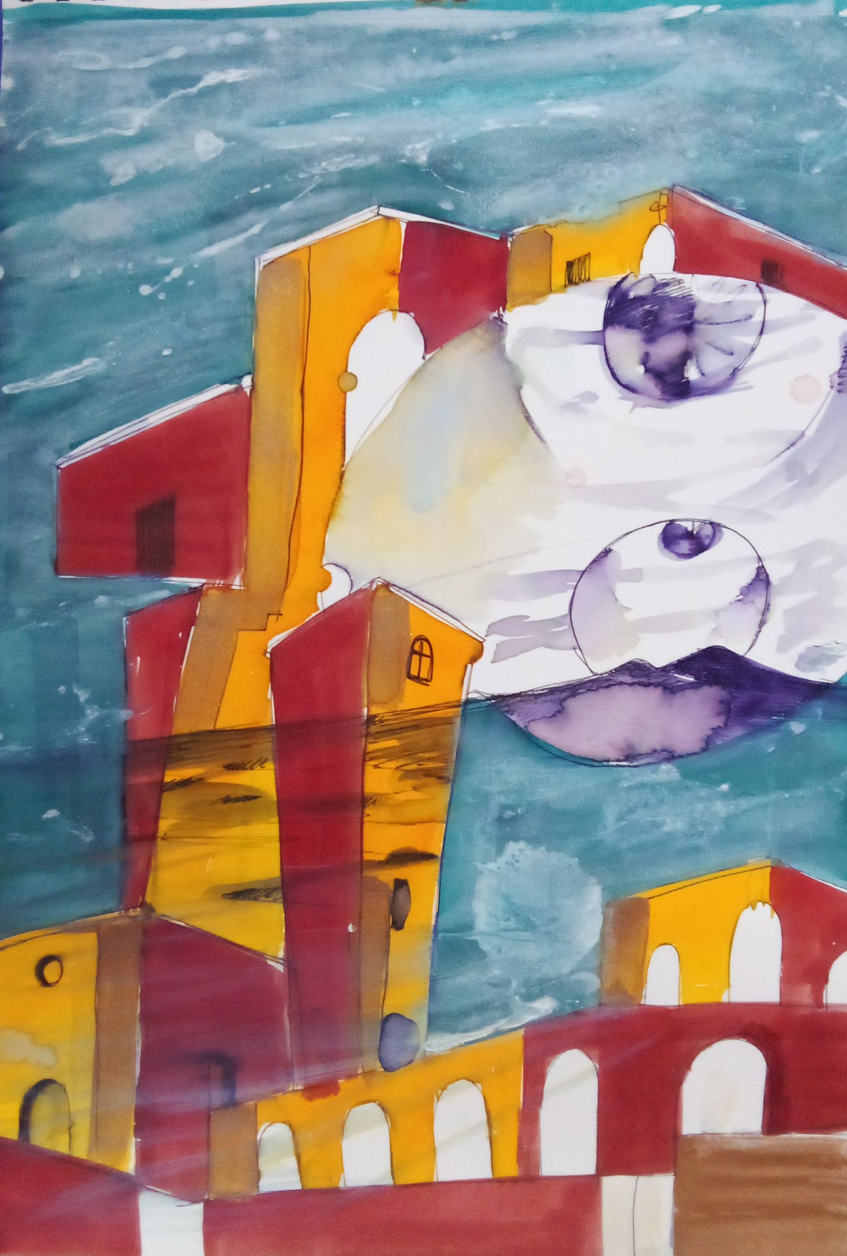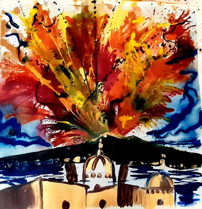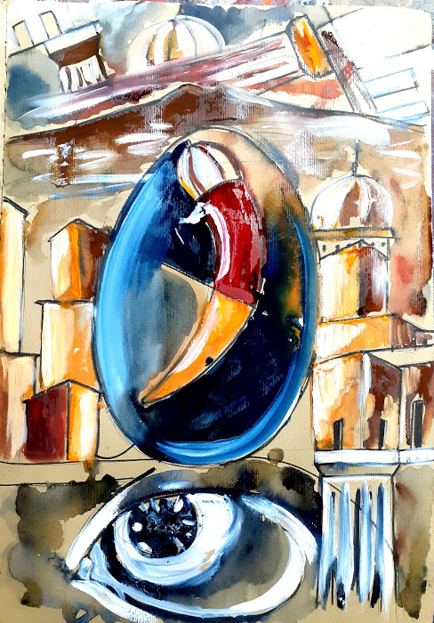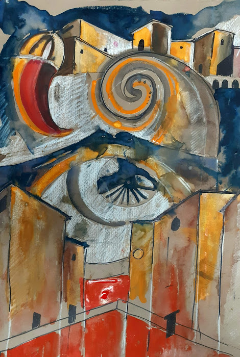 Ha avuto inizio alla fine del 2019, quasi a volere pre avvisare quello che e stato poi nel 2020 con le restrizioni ed il lockdown, il momento che ha attraversato l’umanità intera. Reclusi ed in isolamento forzato l uomo lascia spazio alle citta vuote ed isolate come se fossero in sospensione ed in attesa di qualcosa o qualcuno che arrivasse per rompere l incantesimo. Nella serie succitata si possono notare delle tecniche miste su foglio o tele di paesaggi urbani con soli elementi iconografici della cultura partenopea, dai corni al vulcano piu famoso al mondo. Tutto in estrema solitudine, non vi sono figure umane o animali, predominano palazzi e cupole, cromie forti predominano il paesaggio, smarrendo quasi del tutto il pensiero dell uomo che abita la metropoli. Tutto il paesaggio e un susseguirsi di finestre e colate coloristiche che vogliono sostituire il grigiore e la staticità della metropoli vuota dal via vai delle auto ed i passi che solcano l’asfalto.