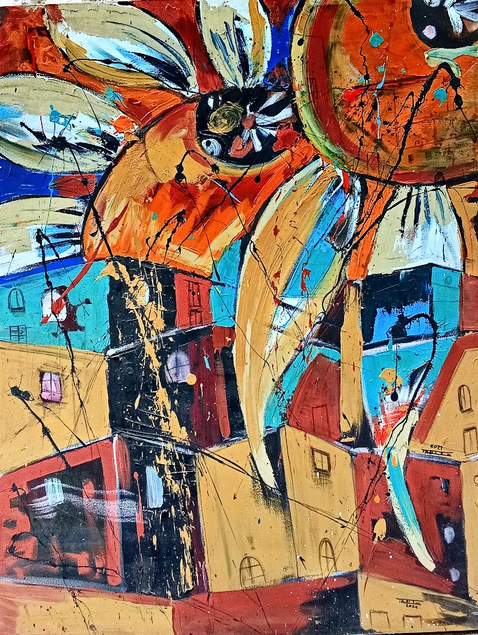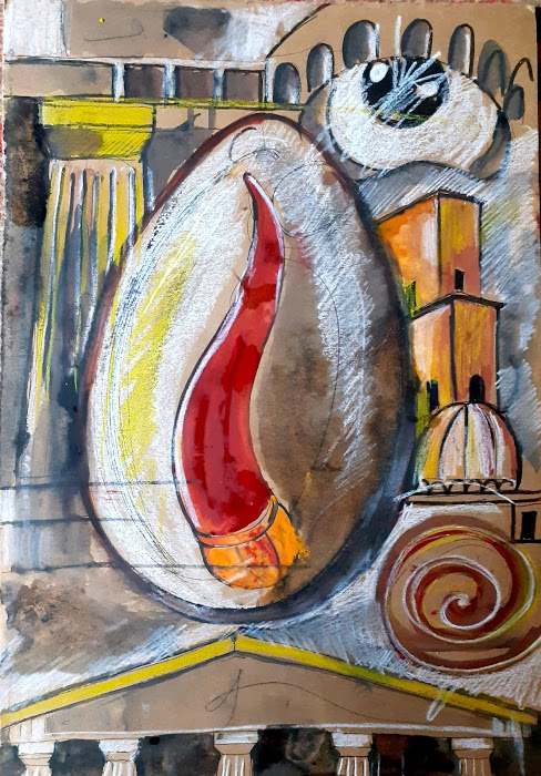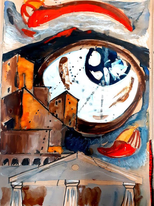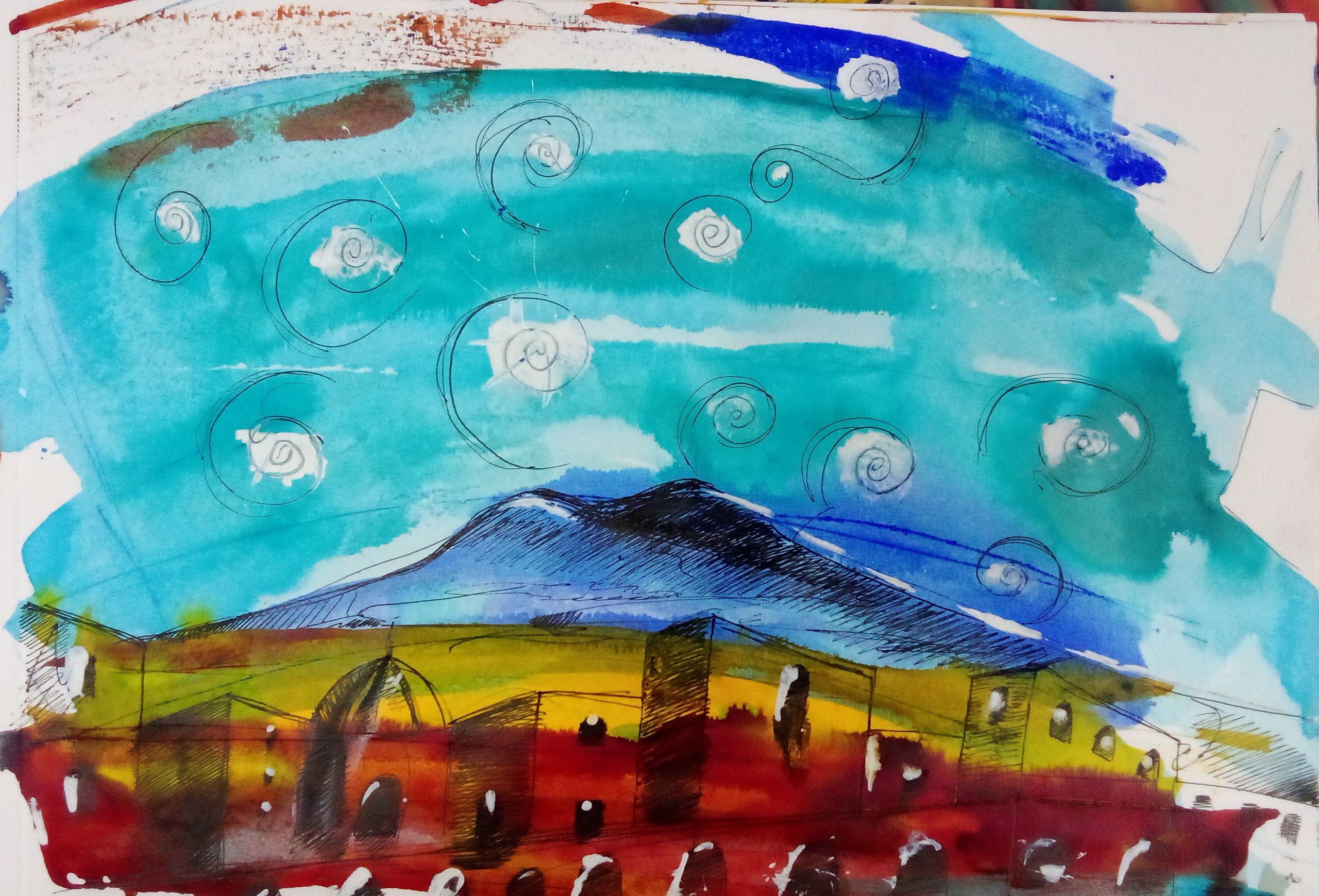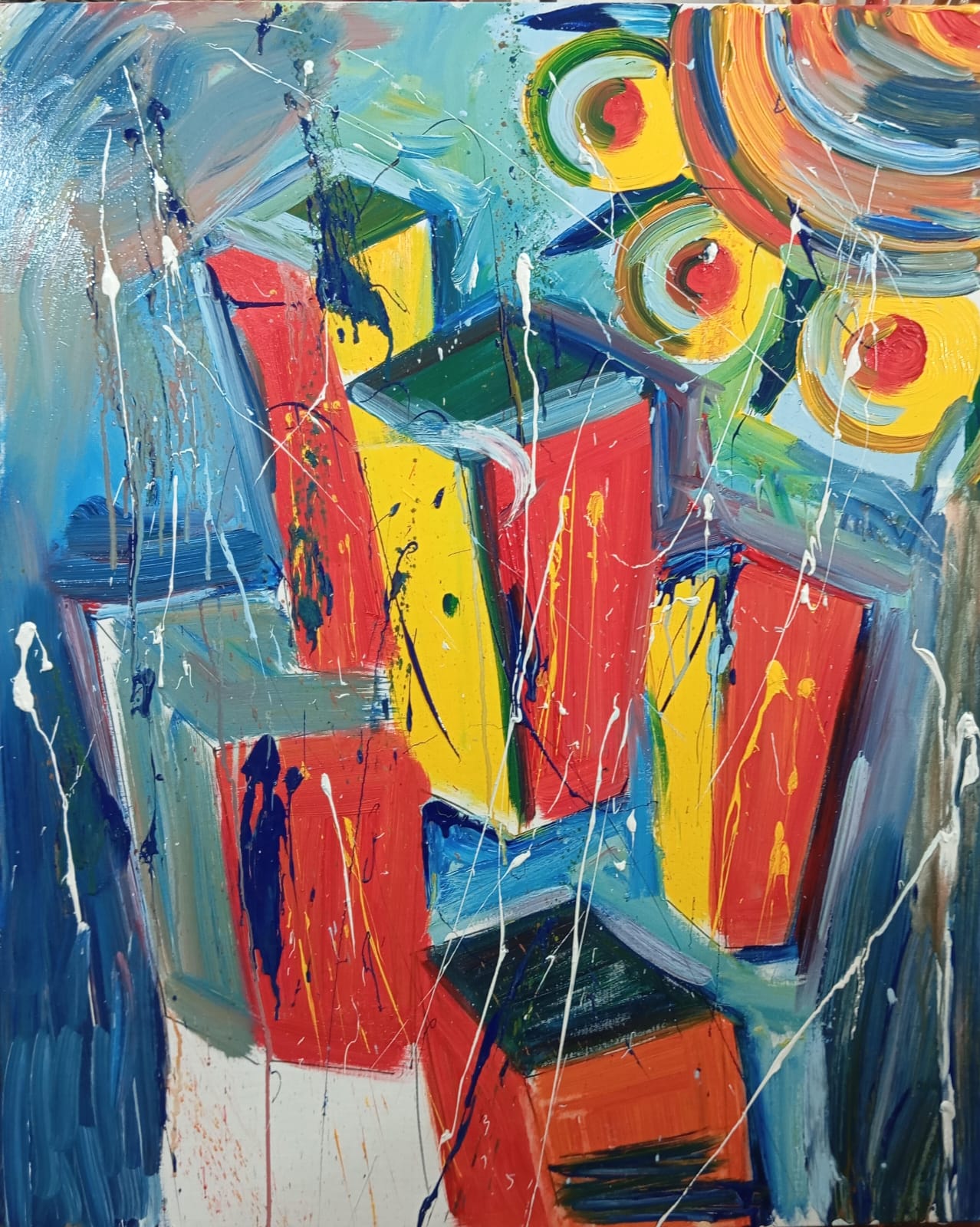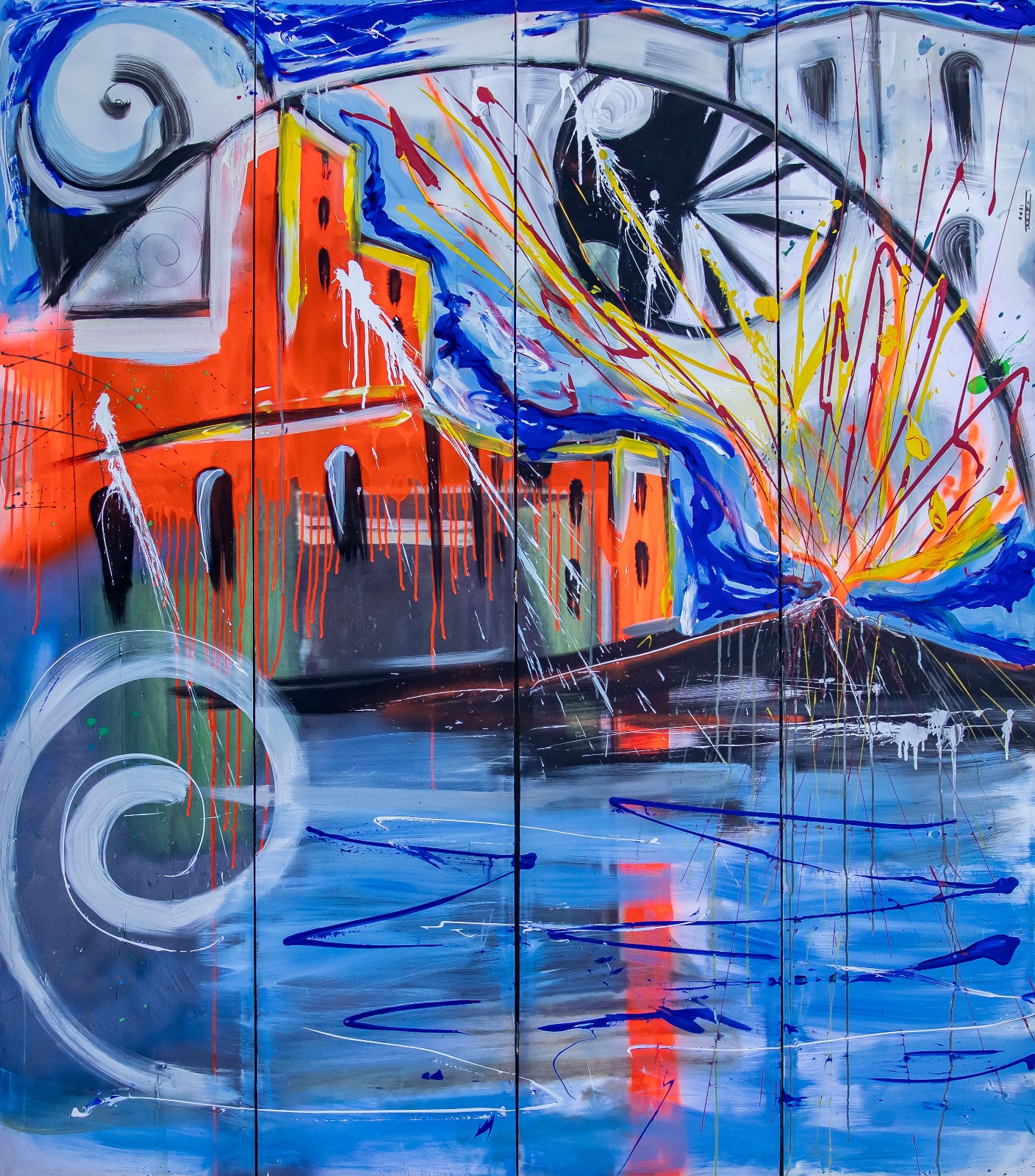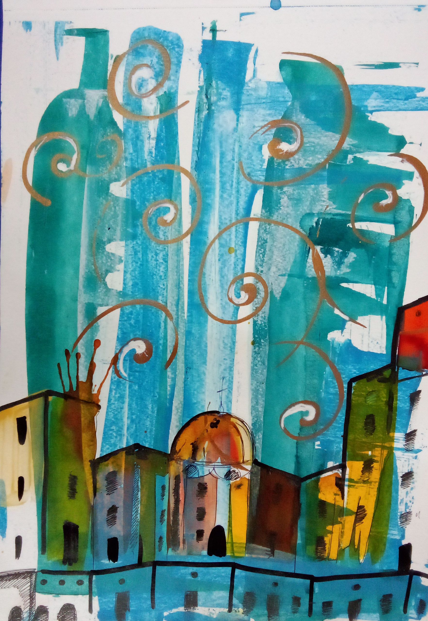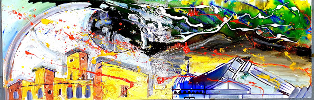 Ha avuto inizio alla fine del 2019, quasi a volere pre avvisare quello che e stato poi nel 2020 con le restrizioni ed il lockdown, il momento che ha attraversato l’umanità intera. Reclusi ed in isolamento forzato l uomo lascia spazio alle citta vuote ed isolate come se fossero in sospensione ed in attesa di qualcosa o qualcuno che arrivasse per rompere l incantesimo. Nella serie succitata si possono notare delle tecniche miste su foglio o tele di paesaggi urbani con soli elementi iconografici della cultura partenopea, dai corni al vulcano piu famoso al mondo. Tutto in estrema solitudine, non vi sono figure umane o animali, predominano palazzi e cupole, cromie forti predominano il paesaggio, smarrendo quasi del tutto il pensiero dell uomo che abita la metropoli. Tutto il paesaggio e un susseguirsi di finestre e colate coloristiche che vogliono sostituire il grigiore e la staticità della metropoli vuota dal via vai delle auto ed i passi che solcano l’asfalto.