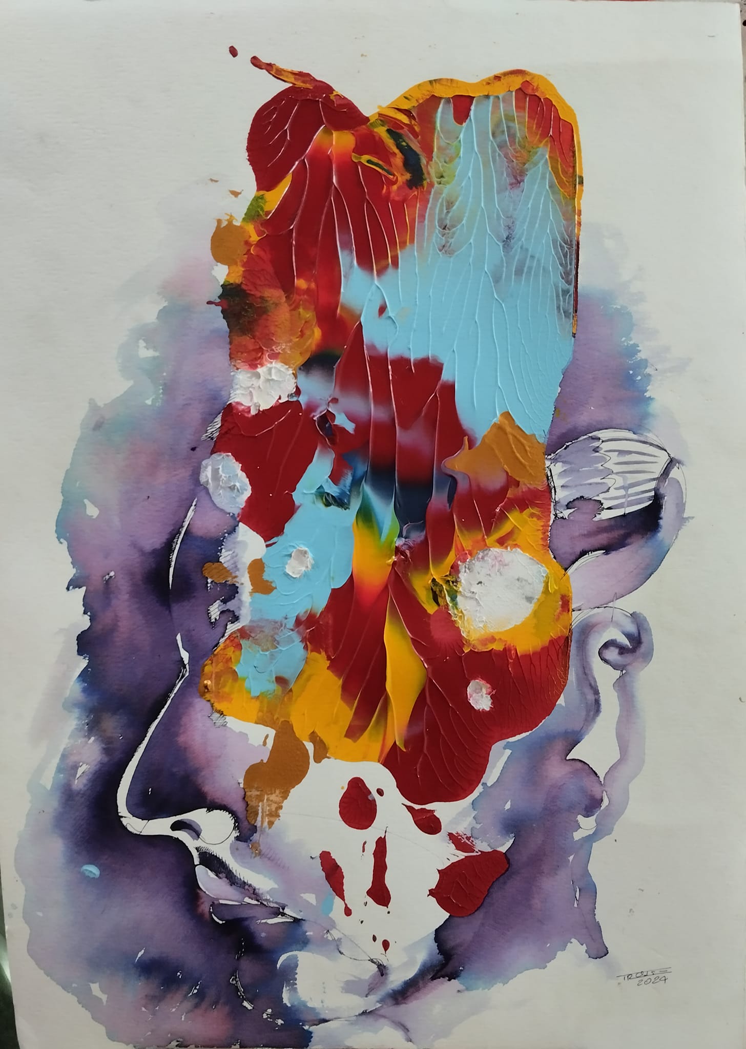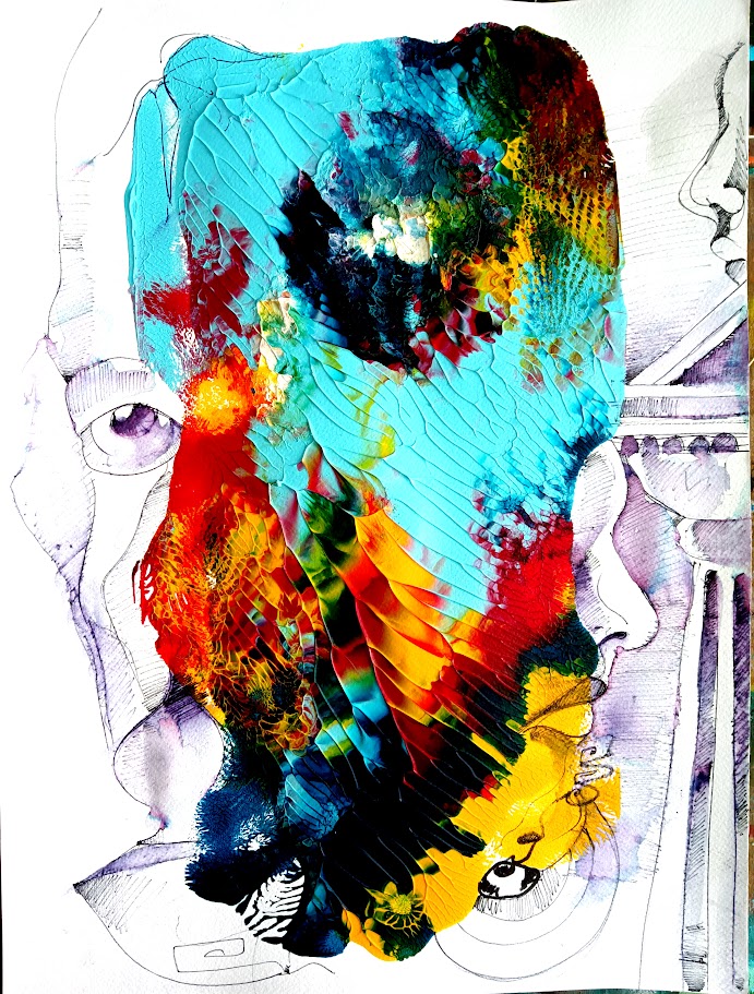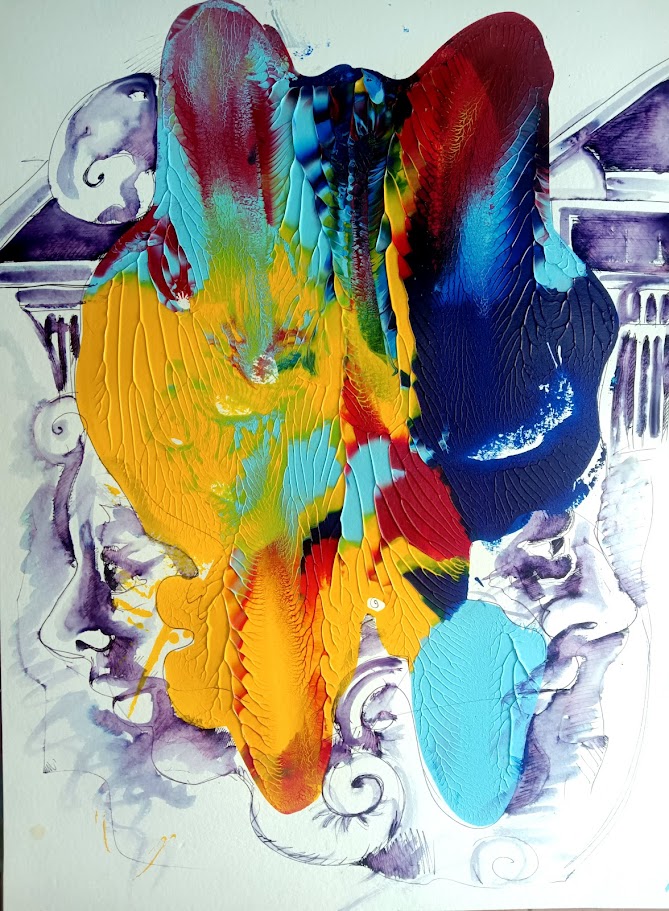La serie dei “Monotipi” segue un percorso di figurazione e astrazione che destrutturizza tutto ciò che si può definire figurazione, ed al tempo stesso inserisce delle icone storiche o archetipi molto antichi. Questi acrilici su cartoncini di fibra di cotone, sono frutto di un attento studio sulle forme e sulla materia, una precisa analisi di ciò che potrebbe essere l’informale che sposa la figurazione, concetti che possono risultare degli osssimori ed in contraddizione Artistica ma un colpo d’occhio coloristco e grafico.