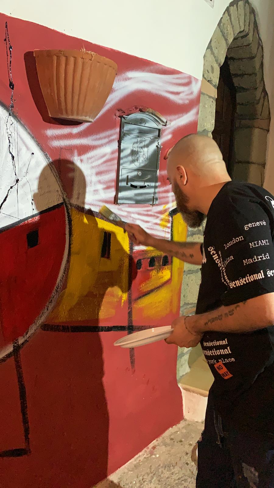 Il murale si differenzia dal graffito per tecnica ed esecuzione. Mentre per il graffito il writer usa bombolette spray, il muralista crea una vera e propria tela sulla superficie del muro usando pennelli e colori. Il murale si potrebbe definire il progresso moderno dell’ antica tecnica dell’affresco, che per ovvie ragioni legate a fine loro a base di pigmenti antichi a base di soluzioni naturali diluibili solo con caseina e albume d’uovo, gli Artisti dell’epoca erano costretti, vedi Michelangelo, a ricorrere alla tecnica dell’affresco che consisteva nella preparazione della parte muraria da dipingere, un intonaco fresco e di andarci a dipingere in maniera molto rapida vista la veloce asciugatura dell’ intonaco fresco. E proprio nell’intonaco asciutto che i colori a tempera andavano ad accordarsi e fare un tutto uni con il muro. Tutto questo oggi non accade grazie a nuovi materiali pronti all’uso direttamente sulla superficie del muro. Al Borgo d’Arte di Valogno avviene la mia consacrazione di Muralista grazie all’ esecuzioni di alcuni dipinti murali in questo borgo dove attualmente ho aperto una casa bottega